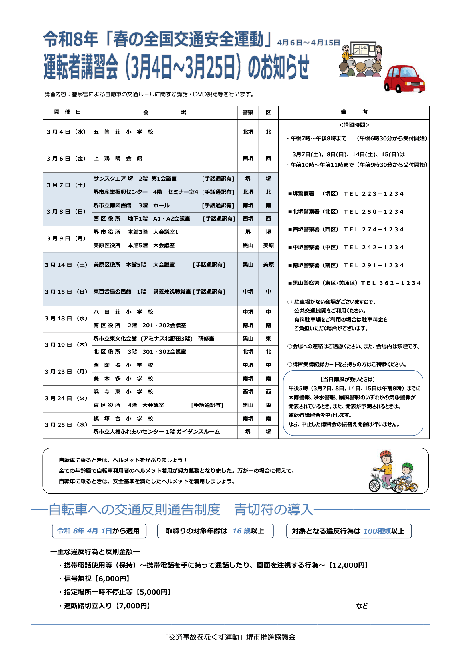 令和8年 春の交通安全運動の運転者講習が以下の開催されます。